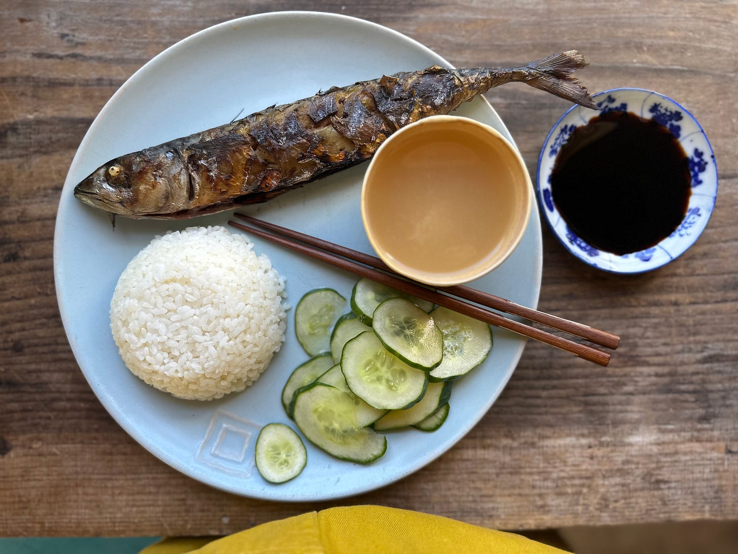 Not a new revelation, though it does feel like a revelation every time, that mackerel, grilled simply with a little soy and sake is one of the best things to eat on planet earth. Served with miso soup (again with Maine seaweed), butter rice, and barely dressed cucumbers. Japanese breakfast beats Cheerios to dust.