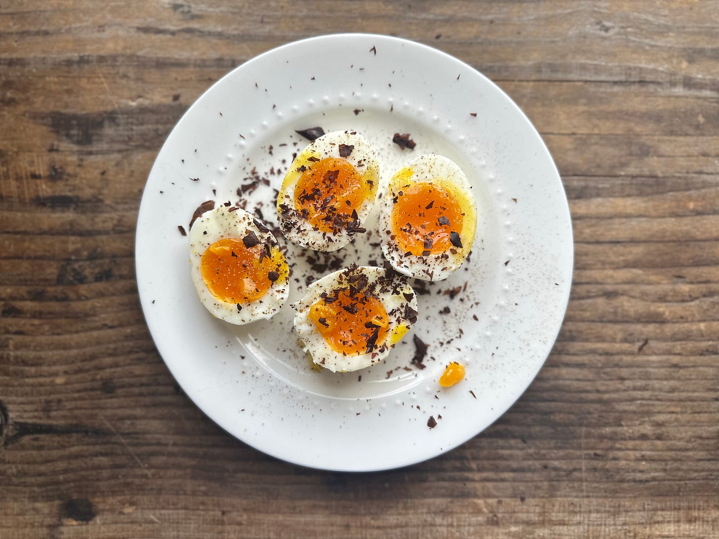 A staple lunch that I have yet to tire of. Jammy eggs showered in toasted Dulse. Splash of malt vinegar is nice.