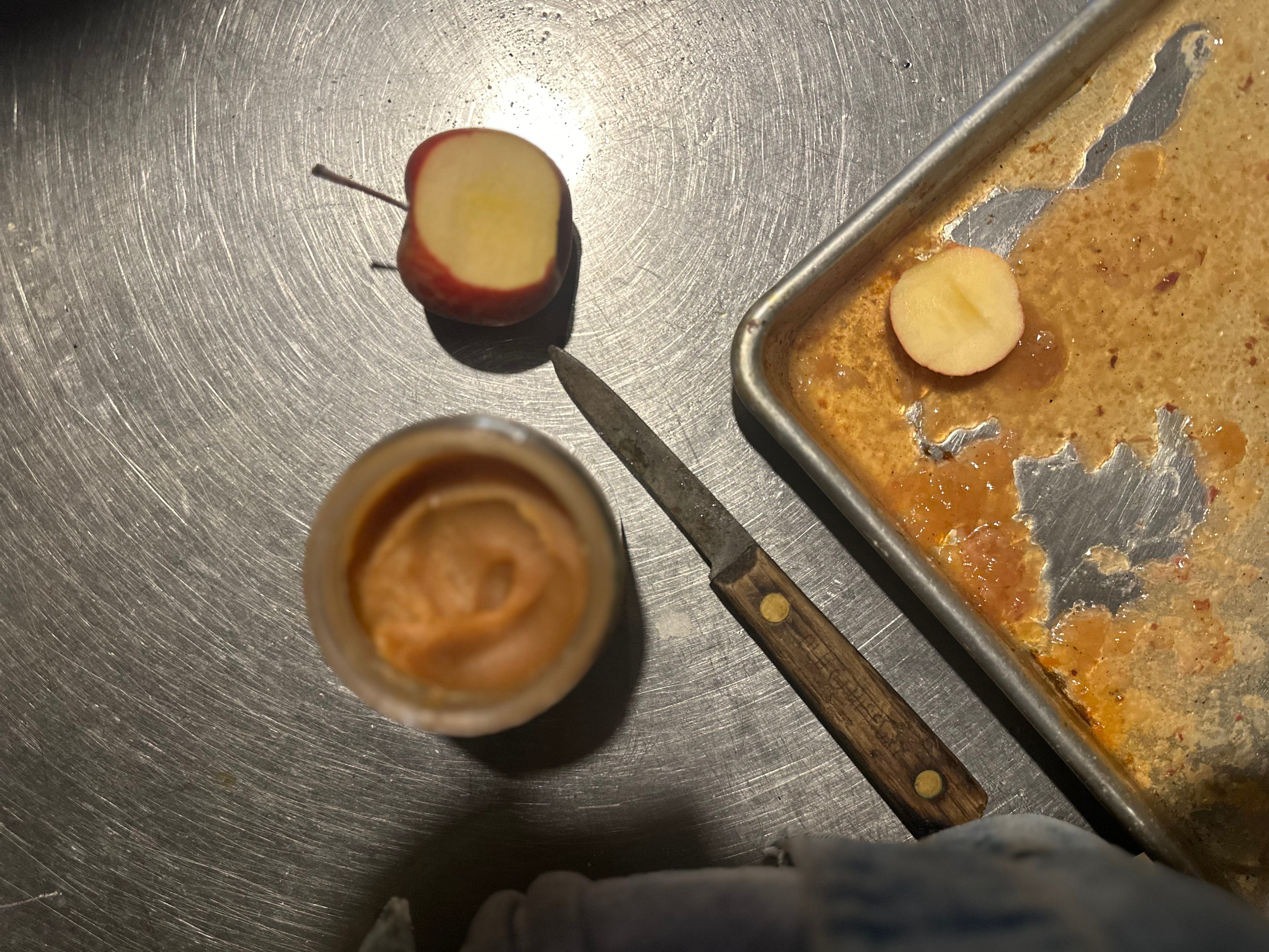 This was what we call a happy accident or maybe even divine intervention. I was eating a sad girl dessert, standing at the counter after a long day feeling bad about something or another. I’d roasted chicken thighs for dinner and had not done the dishes yet. I was slicing a feral apple and spreading with goat milk caramel when I dropped a slice into the chicken fat left on a pan. For a split second I pouted until I realized what I’d just been gifted. The resulting combination was one of the best bites of the year. I’ve been thinking of how I can replicate it intentionally for a fall wild food walk menu this year.