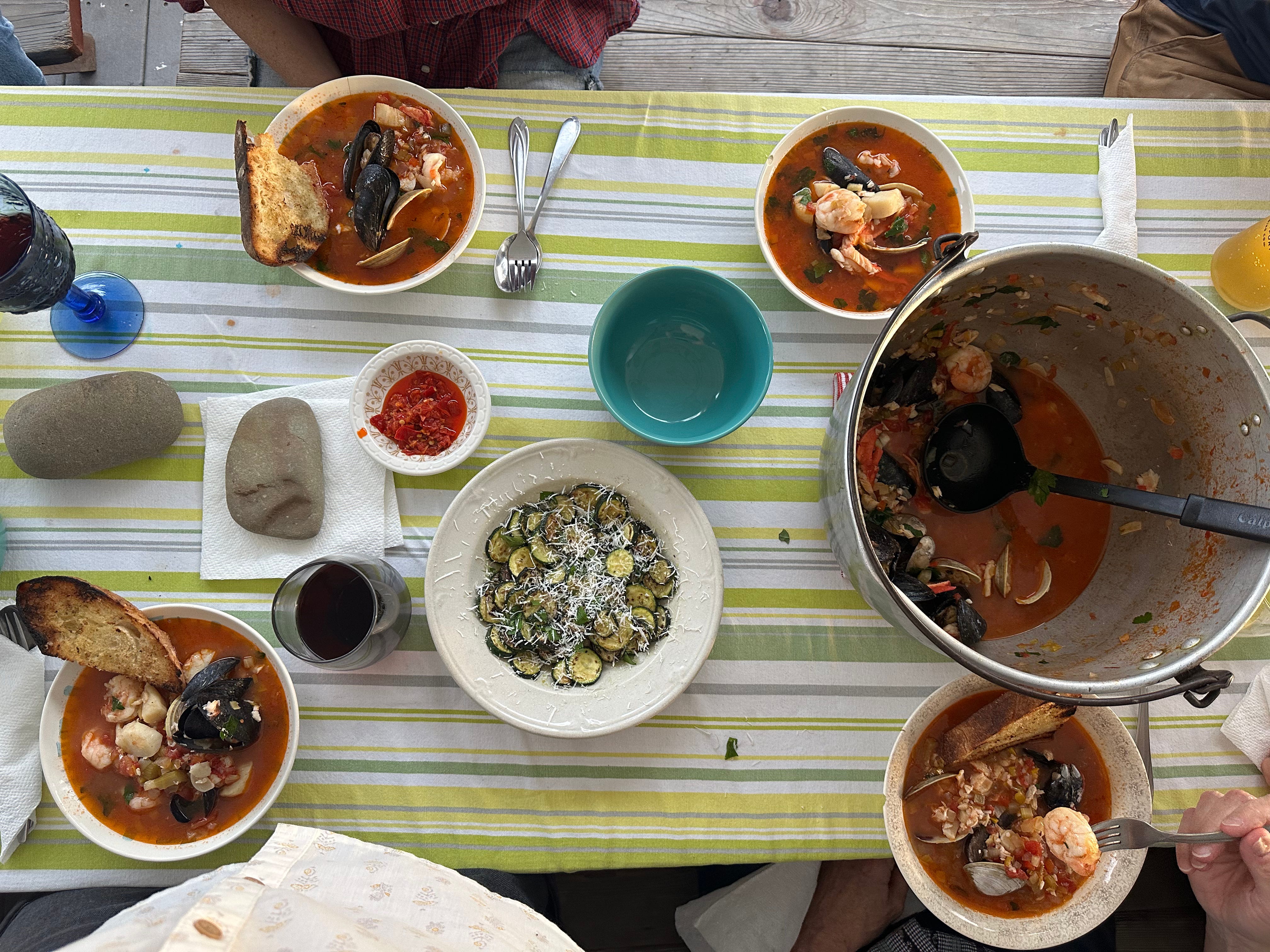 Cioppino on the porch at the beach house made and eaten with family and friends was as sublime as a gathering can get. A glut of Frutti de Mare in the pot, including a few filets from my trip offshore to Platts Bank, which offered a freezer full of gorgeous fish and one of the better stories I wrote all year.
