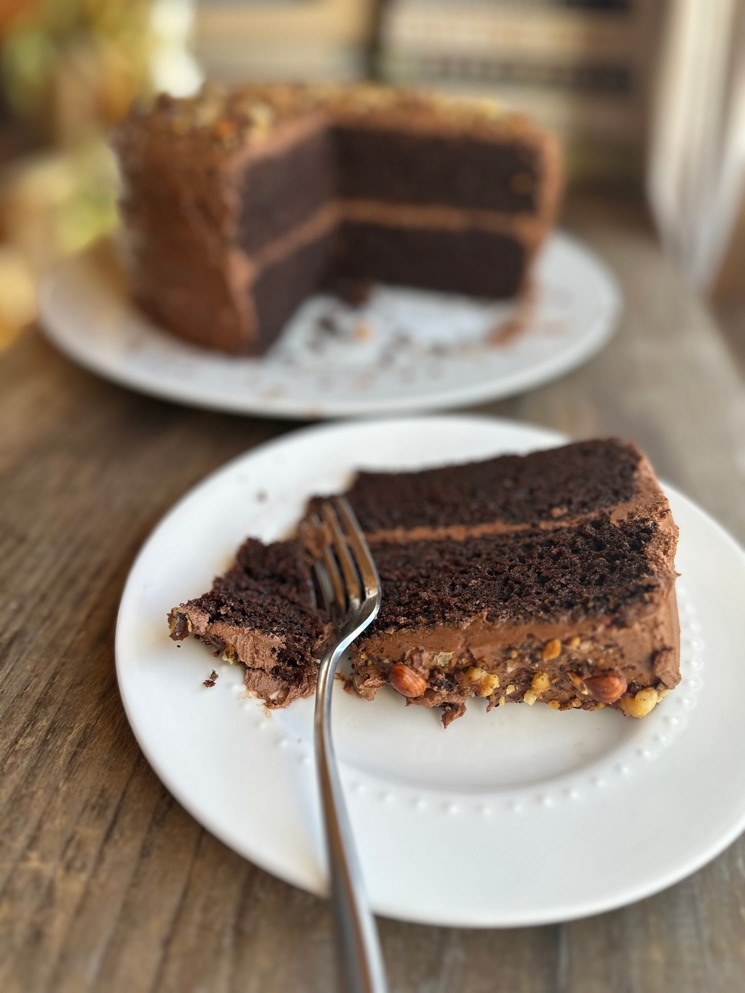 This perfect, perfect chocolate cake with acorn flour and toasted wild nuts knocked my socks off. I baked it in between thawing and butchering a very frozen roadkill deer. Perfect time now to be hot leaching acorns on the woodstove for another.