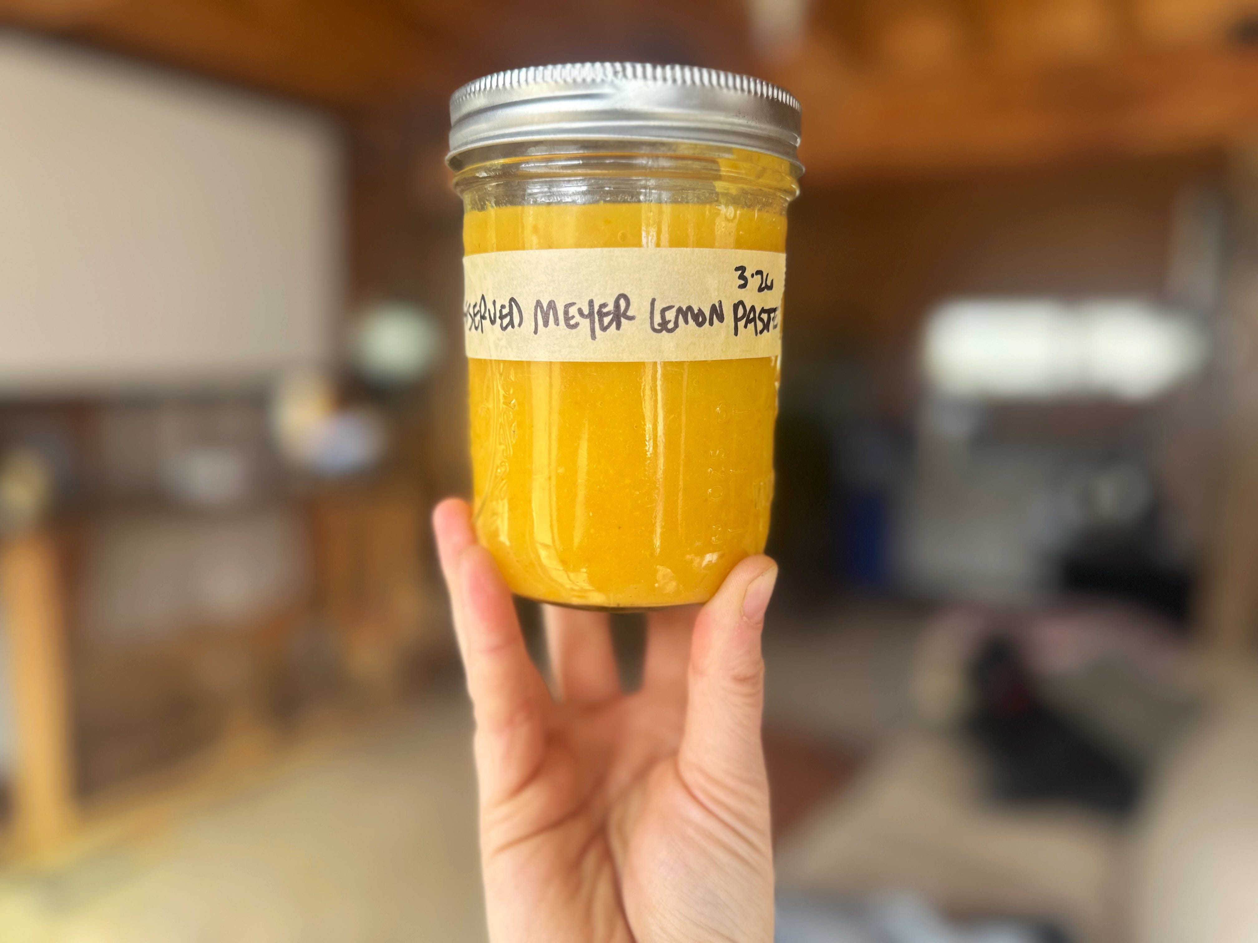 My dearest friend Evan Mallet, always spilling with treats and wisdom, chucked handfuls of Meyer lemons at me when I went to visit him at his restaurant, Black Trumpet Bistro to give him a few foraged things like fireweed tea, wild cherries, black trumpet mushrooms, and pine pollen. I asked him what he would do with the lemons and he said to preserve them, so I did. I used Samin Nosrat’s method in her new book Good Things to make a fermented paste. I left out the suggested turmeric root (for color), and did not find that the color suffered at all. I am wondering if I can treat fresh sumac in a similar way but will have to wait until August to try.