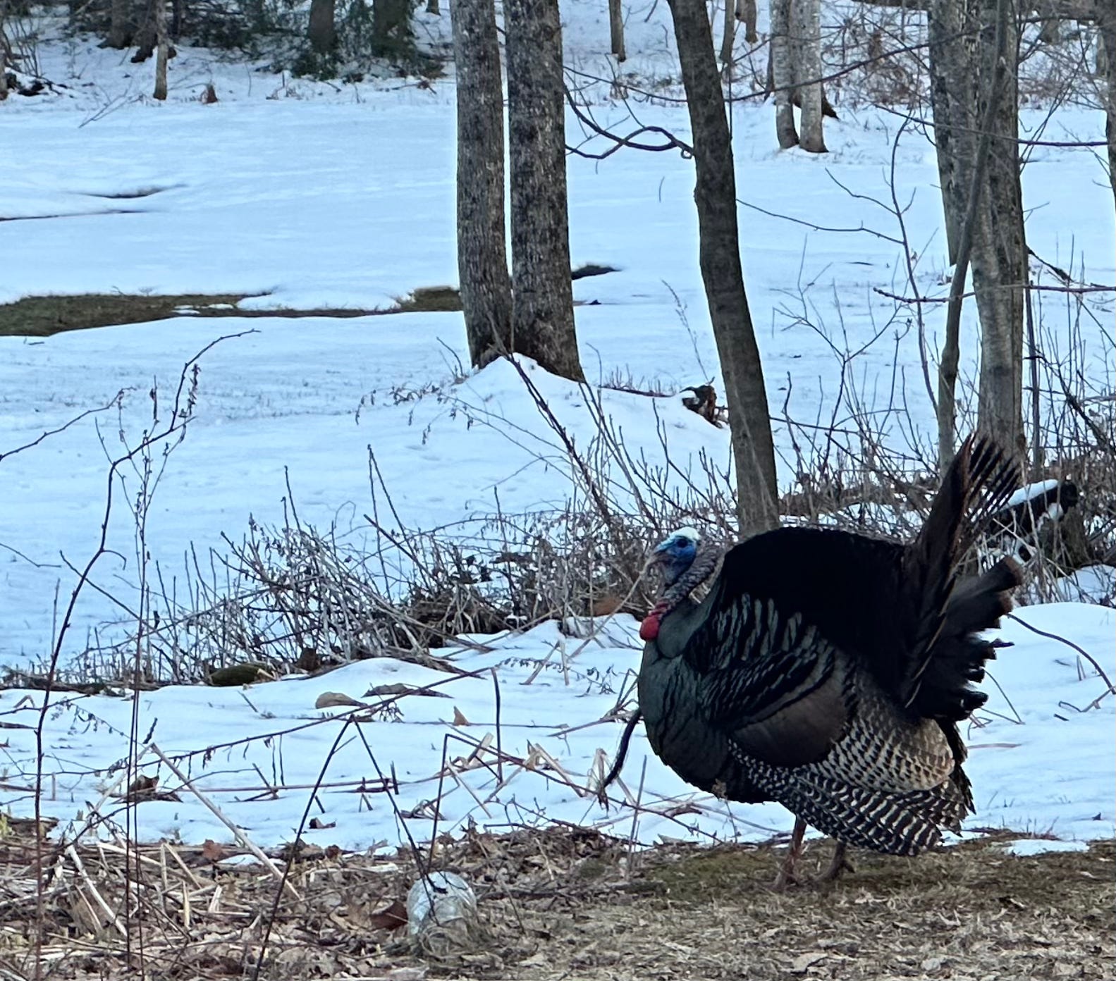 Spotted our first strutting tom turkey of spring. New birds and bird sounds showing up every day now. Woodcock peenting and towering in the yard at night, phoebes are back in the eaves, the grass alive with robins, Song sparrows singing up the sun, geese, hawks, everyone chiming in. The contrast of the morning chorus to the quiet of a few weeks ago makes the blood pump.