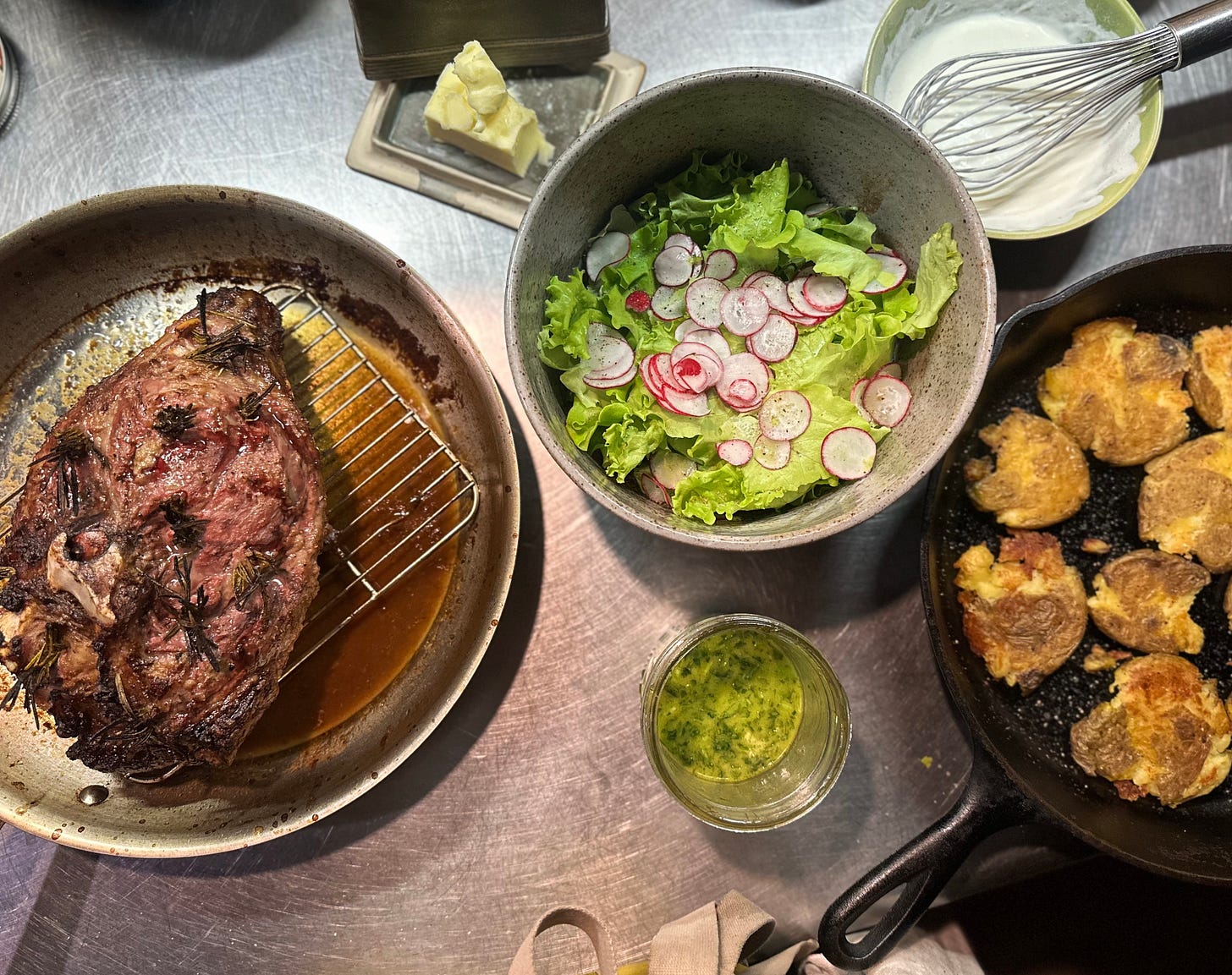 It was overflowing with umami and served with a fresh herb salsa, some of the last potatoes from the garden - extra crispy - and salad a la creme. I want to try this with a venison roast, though it’ll need supplemental fat if I want any jus.